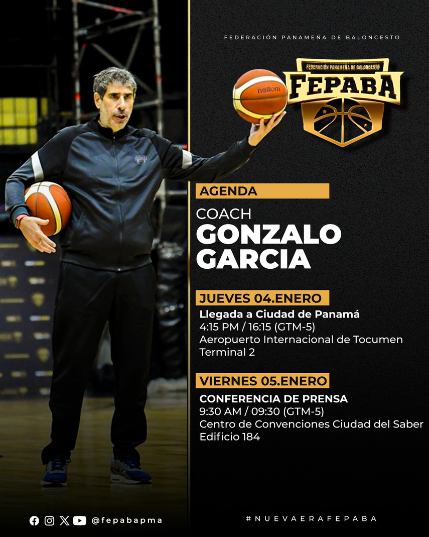 El argentino Gonzalo García, el elegido por la Federación Panameña de Baloncesto (FEPABA) para ser el nuevo coach de la selección de Baloncesto de Panamá, llegó al país el jueves 4 de enero para asumir un nuevo reto en su carrera.