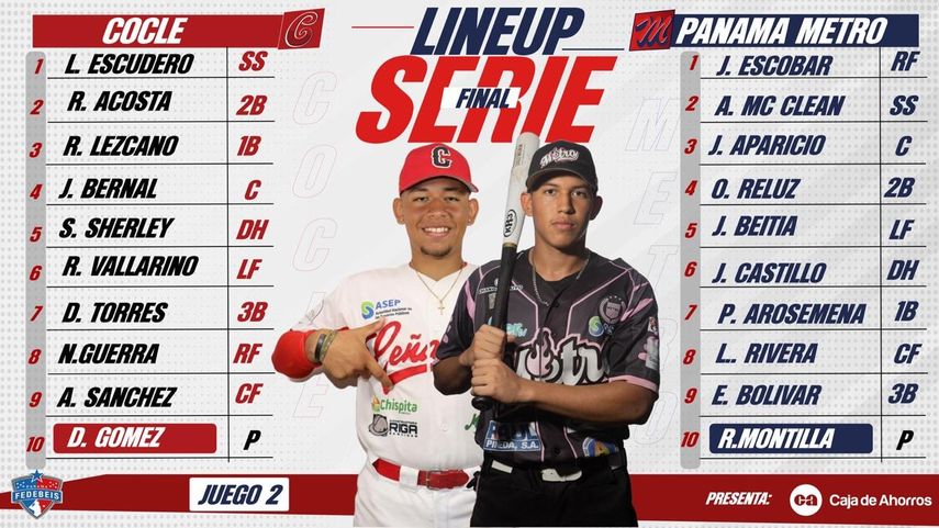 Repasa todo el minuto a minuto de lo que ocurre en el Panamá Metro ante Coclé, en el segundo juego de la Serie Final del Campeonato Nacional del Béisbol Juvenil 2024, Copa Caja de Ahorros en homenaje a Ramón Crespo.