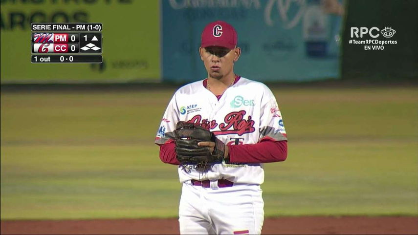 Roderick Lezcano con elevado al short y completa el segundo out.