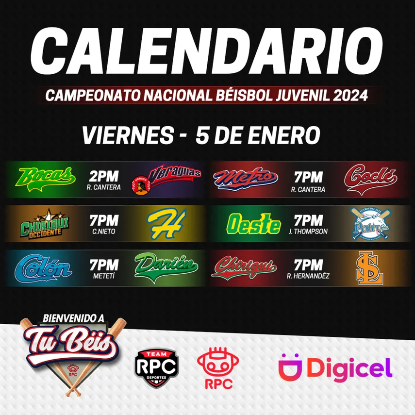 Las emociones del Campeonato Nacional de Béisbol Juvenil 2024, Copa Caja de Ahorros en honor a Ramón Crespo, siguen en marcha este viernes 5 de enero con emocionantes partidos de la segunda jornada del torneo.