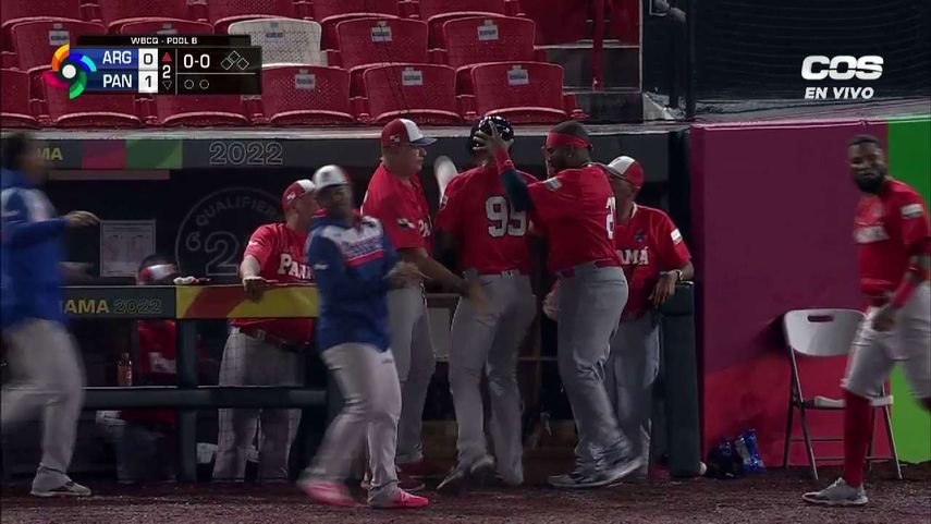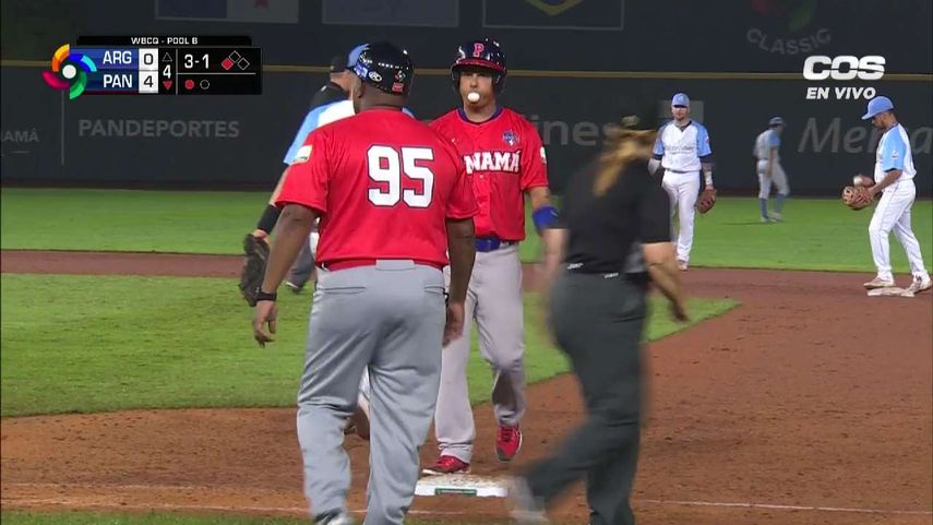 Allen Córdoba en la parte baja del 4to episodio impulsa a Edgar Muñoz tras conectar una línea de hit por la tercera base. Panamá gana 4-0 a la tropa de Argentina.