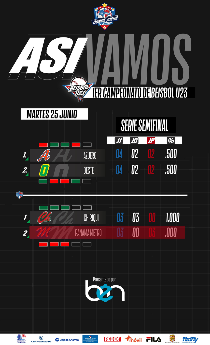Tabla de posiciones - semifinales del Nacional de Béisbol U23