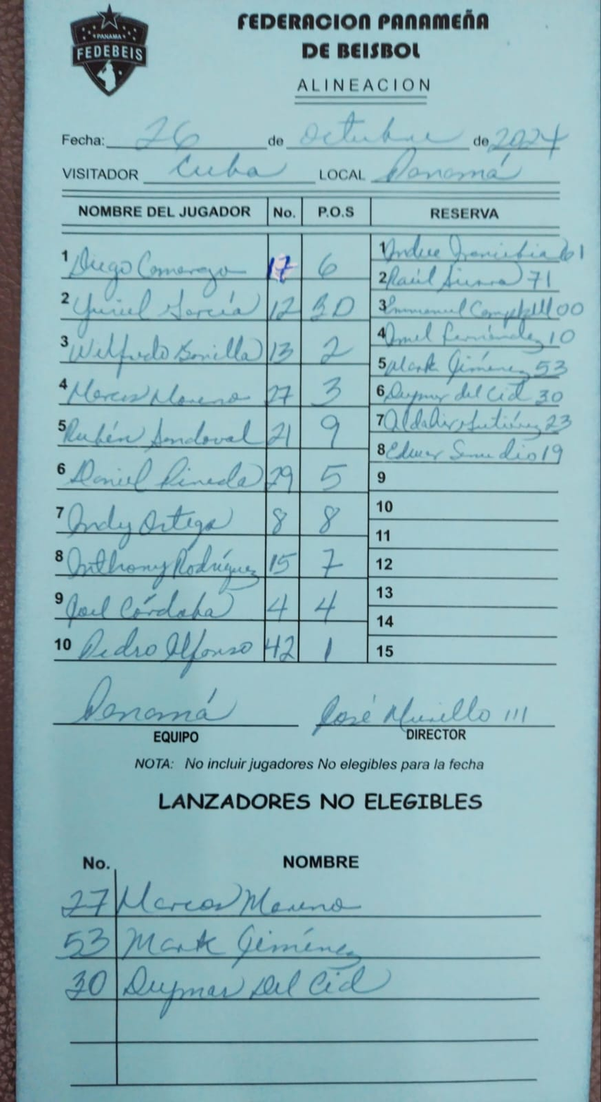 Alineación de Panamá vs Cuba en el Premundial de Béisbol U12