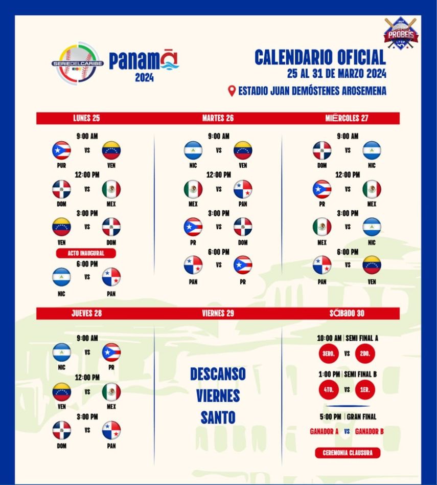 Se anunció el calendario oficial de la primera Serie del Caribe Kids 2024 que se realizará 25 al 30 de marzo en el Estadio Juan Demóstenes Arosemena con la participación de seis equipos: Puerto Rico, Venezuela, República Dominicana, México, Nicaragua y Panamá como sede.