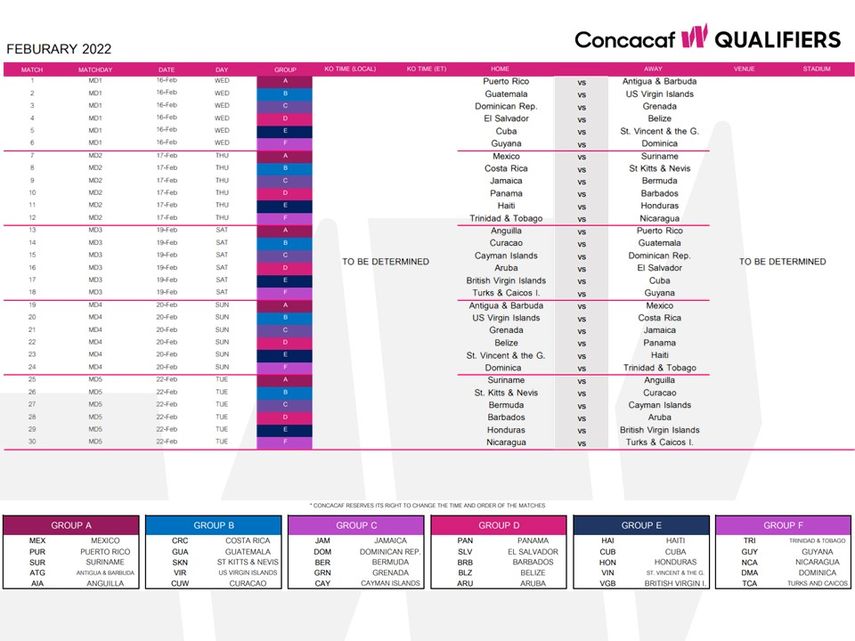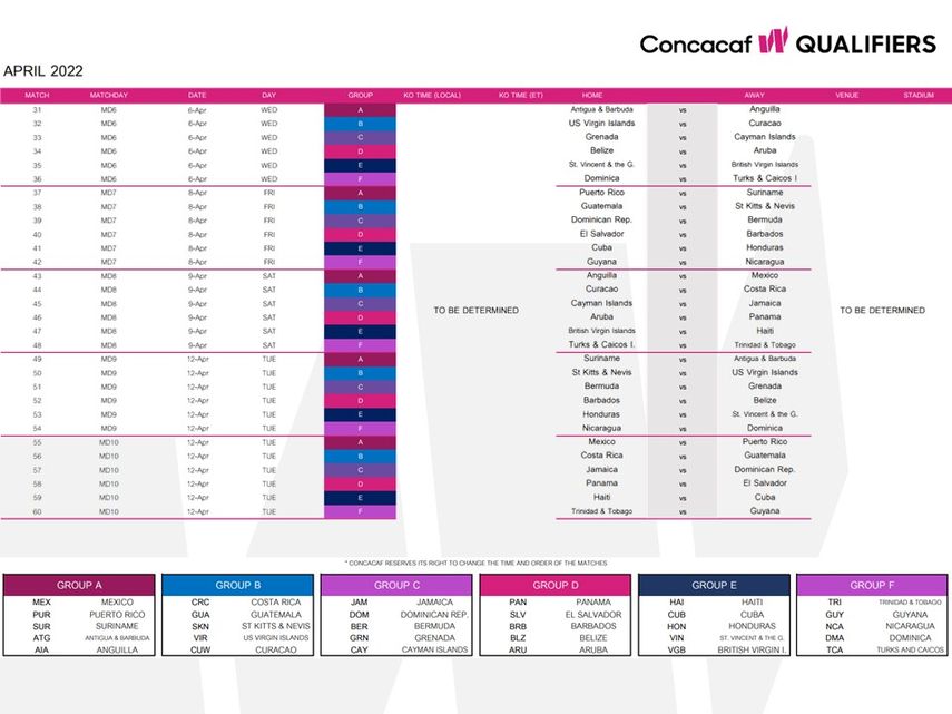 - Grupo D: Panamá, El Salvador, Barbados, Belice y Aruba