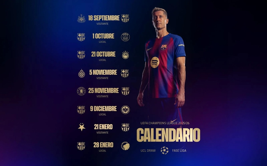 La Champions League 2025/26 toma más forma. Tras conocer a los contrincantes en la fase liga en el sorteo celebrado en Mónaco el jueves 28 de agosto, la UEFA ha hecho público el calendario de las ocho primeras jornadas de la competición de las estrellas. Del 16 de septiembre al 28 de enero se desarrollará esta fase, que para los de Hansi Flick arranca con un Newcastle - FC Barcelona el jueves 18 de septiembre a las 2:00 pm en el Saint James' Park.