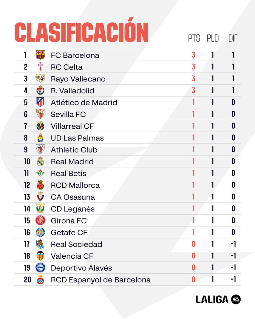 Los colchoneros tendrán un duro partido en la siguiente fecha, cuando enfrenten al Girona el domingo 25 de agosto a las 2:30 p.m y el Villarreal enfrentará al Sevilla el viernes 23 de agosto (2:30 p.m).