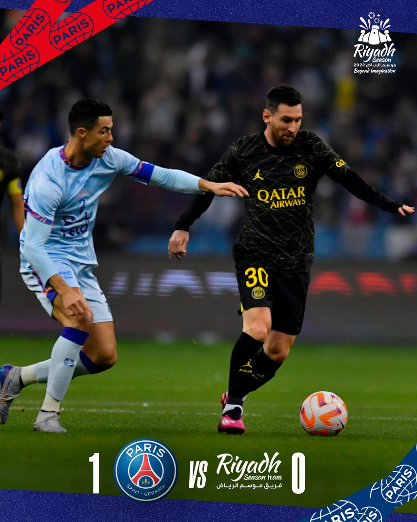 El Riyadh XI de Cristiano Ronaldo cayó ante el PSG de Lionel Messi en un amistoso internacional en Arabia Saudita.