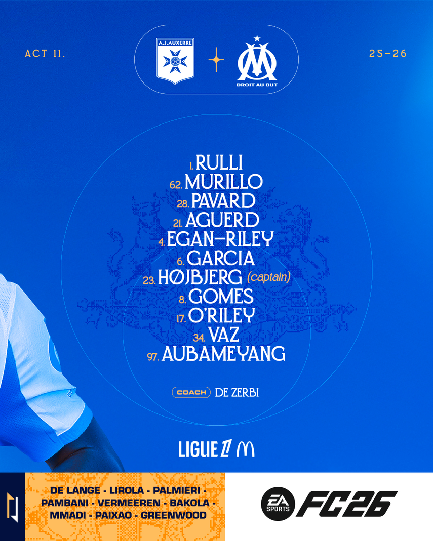 El lateral panameño Michael Amir Murillo figura en el once inicial del Olympique de Marsella, para el duelo ante el Auxerre en el Estadio de l'Abbé-Deschamps (3:05 pm), por la jornada 11 de la Ligue 1 de Francia 2025-2026.
