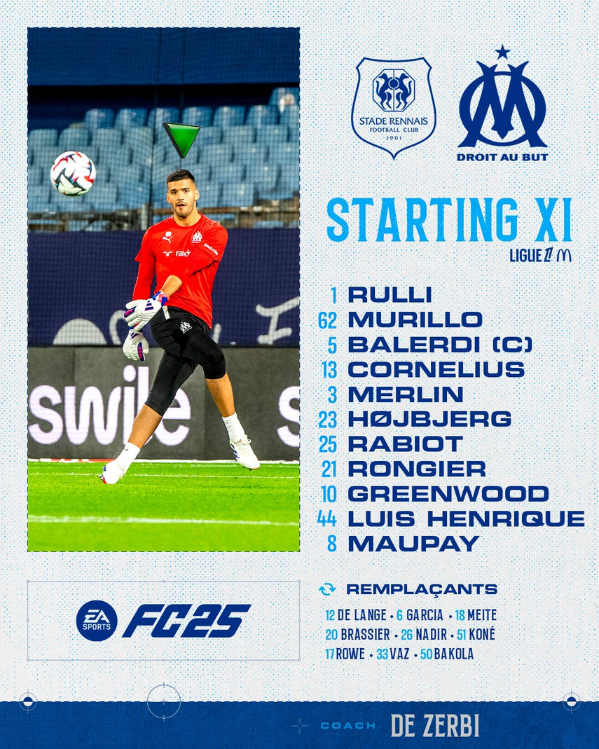 Gerónimo Rulli, Leonardo Balerdi, Michael Amir Murillo, Derek Cornelius, Quentin Merlin, Pierre-Emile Højbjerg, Valentin Rongier, Adrien Rabiot, Luis Henrique, Mason Greenwood y Neal Maupay.