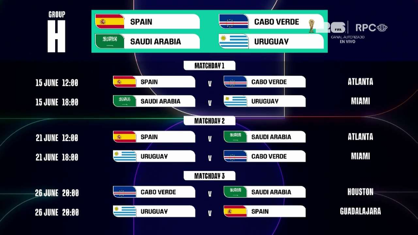 Ubicada en el mismo grupo, el H, en el que inició el camino a su único Mundial conquistado, en Sudáfrica 2010, la selección de España buscará su segunda estrella en el Mundial 2026 con un primer paso asequible, con Uruguay como mayor exigencia, y Arabia Saudí, dos rivales ante los que nunca perdió, y una primera vez ante Cabo Verde.