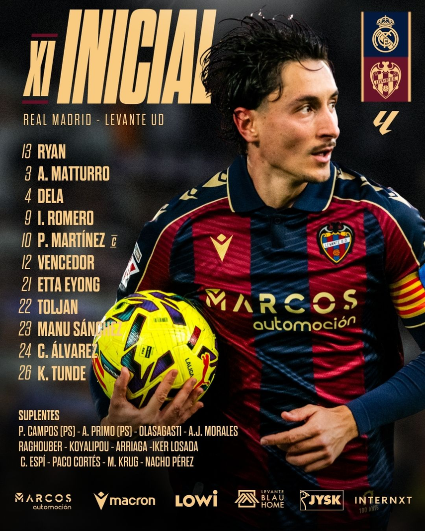 El Real Madrid y el Levante se enfrentarán este sábado en la jornada 20 de LaLiga en el estadio Santiago Bernabéu, en el segundo duelo de Álvaro Arbeloa como entrenador merengue.