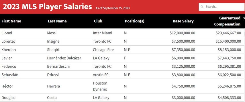 La MLS Player Association reveló los salarios de los jugadores de la MLS donde el astro argentino Lionel Messi lidera el ranking.
