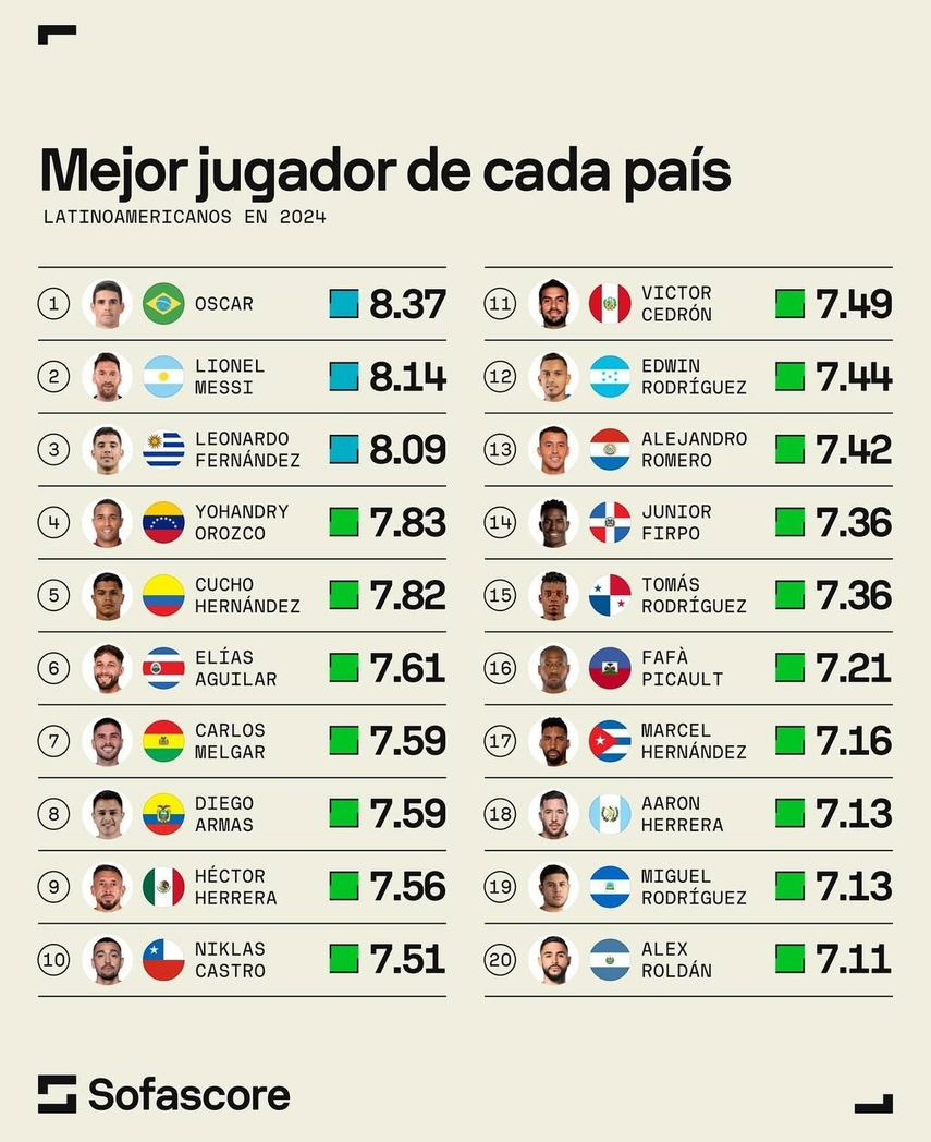 La reconocida aplicación Sofascore reveló su ranking de los mejores jugadores de cada país latinoamericano en el 2024 y entre ellos destaca la presencia del panameño Tomás Rodríguez, jugador del Monagas SC de la Primera División de Venezuela.