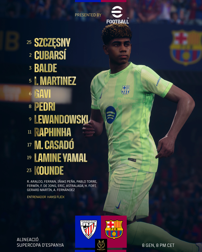 Cabe recordar que el Barça se clasificó después de quedar subcampeón de la Liga 23/24. El Athletic Club lo hizo después de ganar la Copa del Rey.
