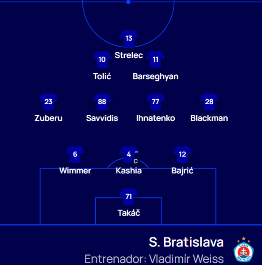 El Bratislava viene de caer 4-0 ante el Manchester City de Erling Haaland, por lo que suman dos derrotas en la Champions League.