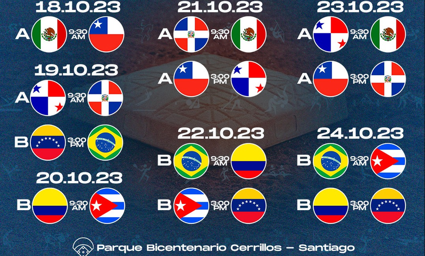 Los Juegos Panamericanos 2023 de béisbol de Santiago, Chile arrancan el 18 de octubre con el anfitrión recibiendo a los campeones de los Centroamericanos (México).