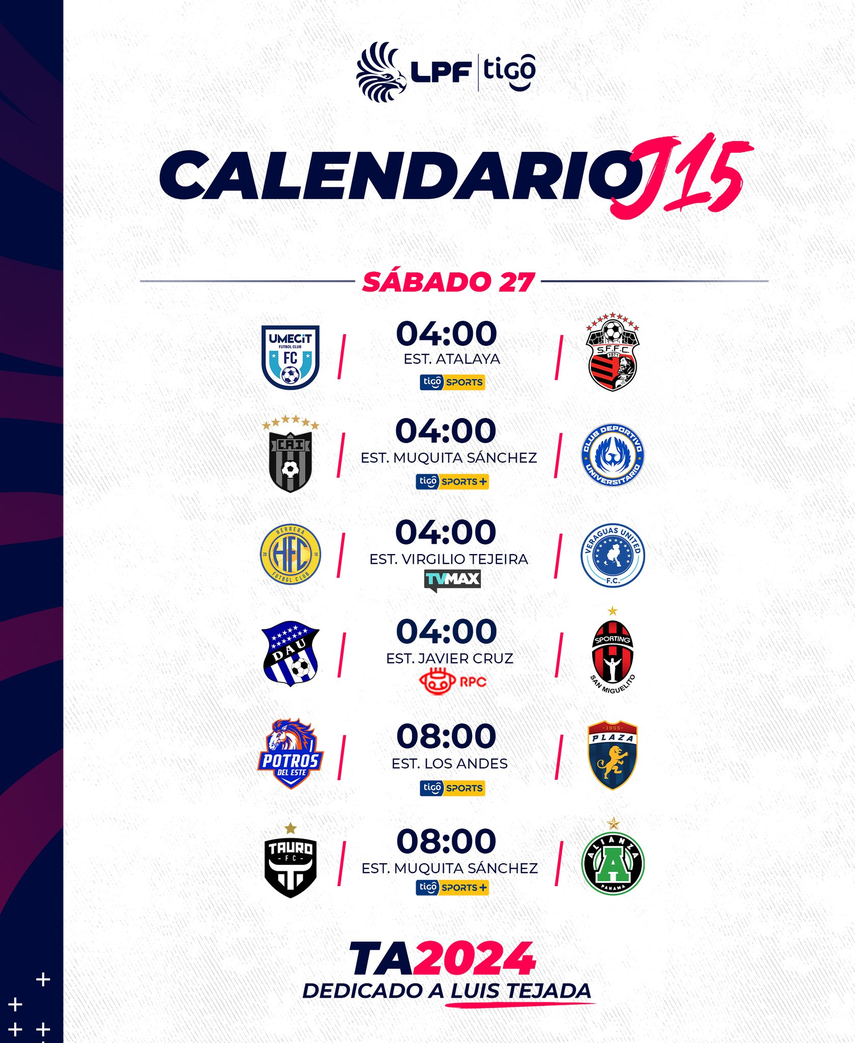 Repasa los partidos que hay para la fecha 15 del Torneo Apertura 2024 de la Liga Panameña de Fútbol (LPF).