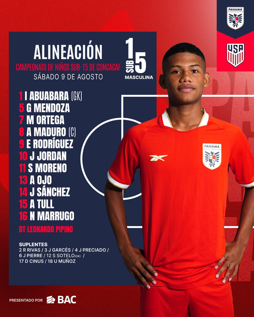 La selección de Panamá Sub-15 dirigida por Leonardo Pipino, ya tiene su once definido para enfrentar a Estados Unidos en la segunda semifinal del Campeonato de Niños Sub-15, que se disputa en Alajuela, Costa Rica.