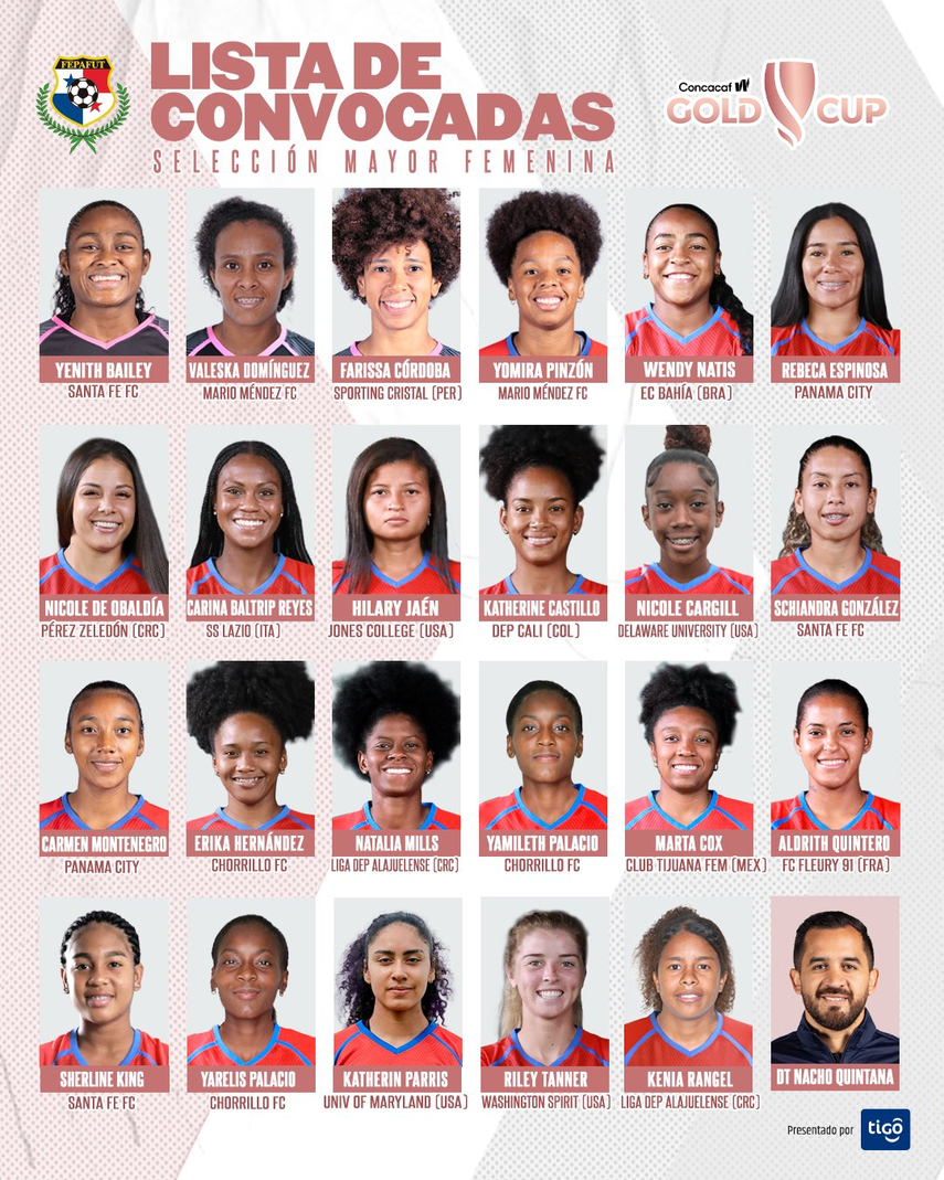 El DT de la Selección de Panamá Femenina, Nacho Quintana, ha entregado la lista de 23 jugadoras convocadas que representarán a Panamá en la Copa Oro W 2024 que se disputará a partir del 20 de febrero en Estados Unidos.