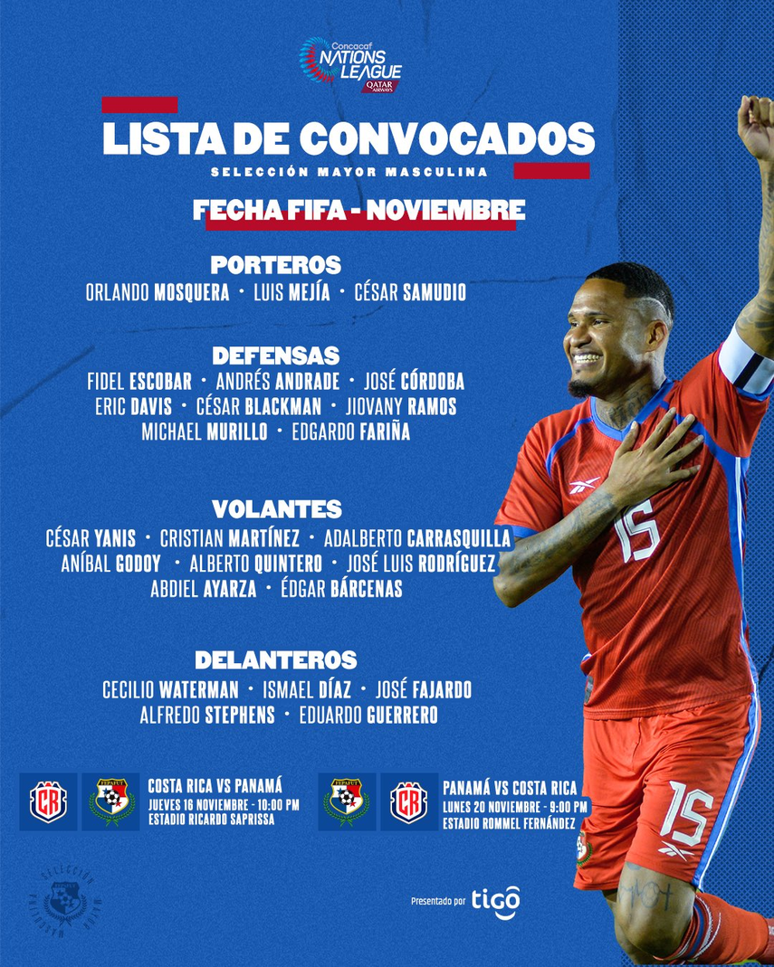 La selección de Panamá ya tiene los 24 elegidos para enfrentar a Costa Rica en un cruce de ida y vuelta en los Cuartos de Final de la Liga de Naciones Concacaf 2023-24.