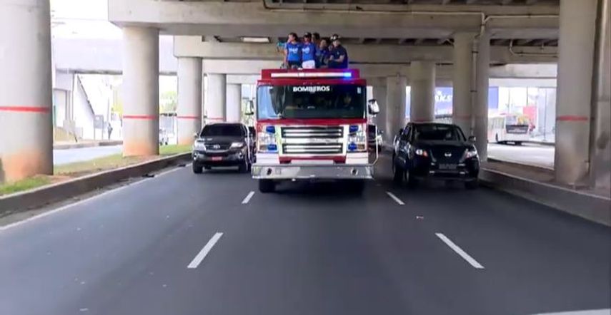 Las jugadoras se encuentran en un camión de bomberos haciendo el recorrido por las calles de la ciudad capital.