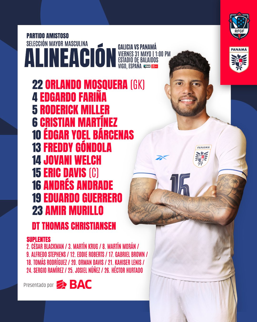 El entrenador Thomas Christiansen confirmó el once inicial de la Selección de Panamá para enfrentar a Galicia en partido amistoso a disputarse en el Estadio de Balaídos, ubicado en Vigo, España.