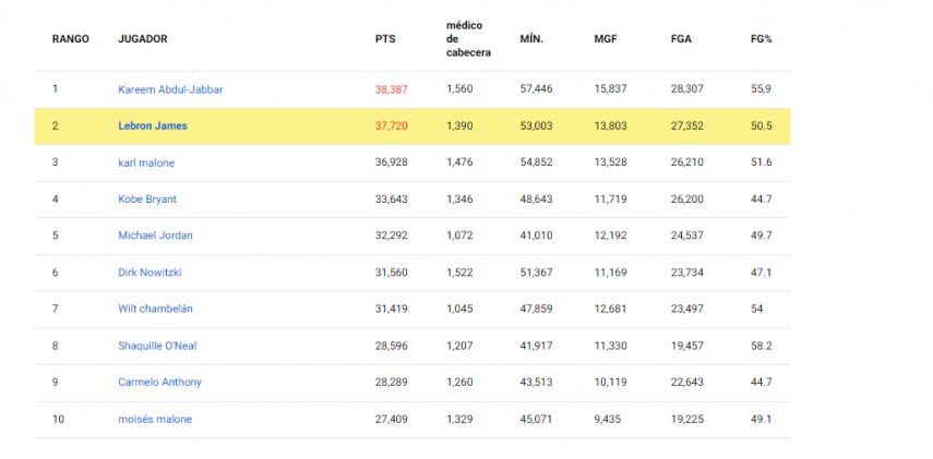 Es probable que uno de los récords más sagrados de la NBA caiga esta temporada cuando LeBron James se acerque al récord de puntos de todos los tiempos establecido por Kareem Abdul-Jabbar (38,387 puntos).