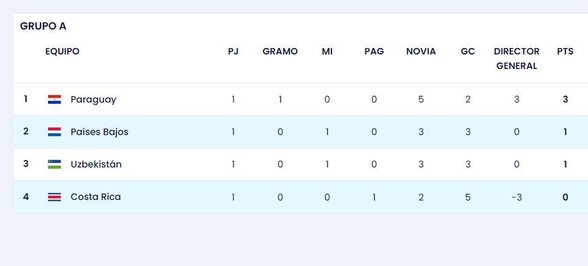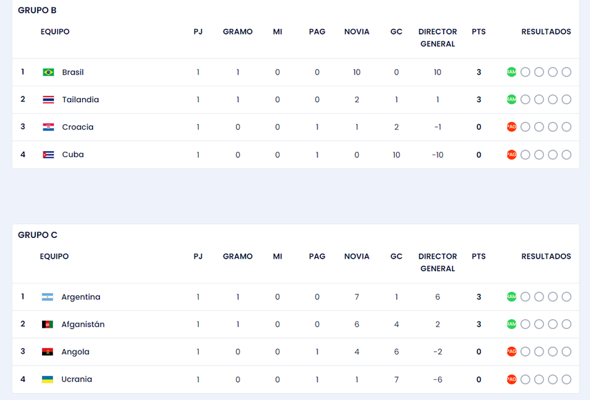 Mundial de Futsal 2024: Tabla de posiciones tras la jornada 1
