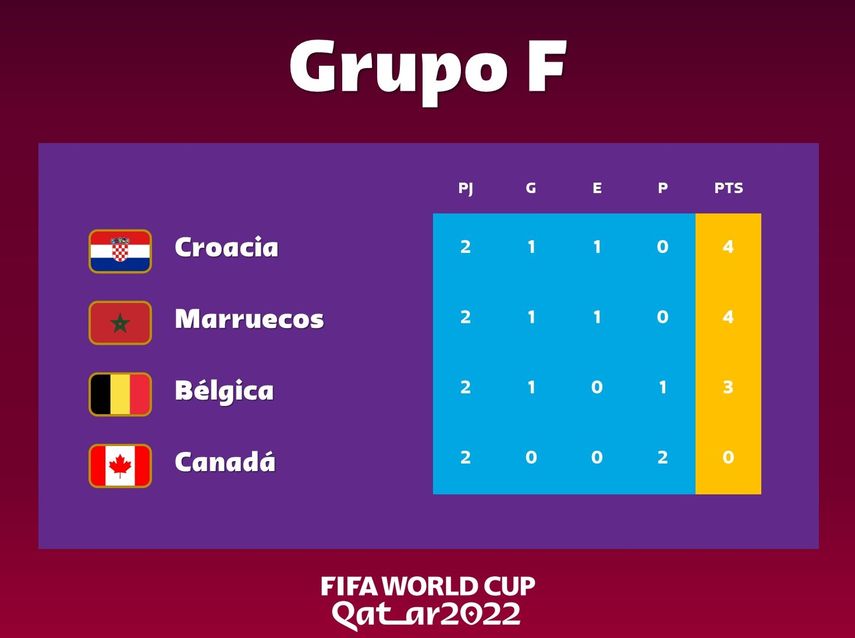 Marruecos avanzará de ronda si suma ante Canadá, pero también podría alcanzarle si pierde sin ser goleado y Bélgica no vence a Croacia.